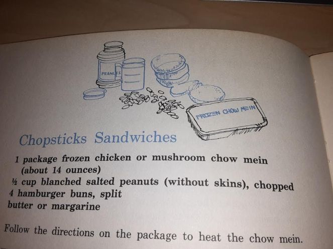 Chopsticks Sandwiches is probably one of the lowest effort dishes in Barbie’s Easy-as-Pie Cookbook. And let’s just address the name and issues with ‘ethnic’ recipes in vintage cookbooks upfront. Reference to chopsticks aside, this is an American recipe. It comes in the middle of the Sandwiches, Salads, and Snacks chapter, and wisely contains no story vignette or Barbie-based flavor text at all. As a white girl who maybe kind of definitely wore a cheongsam to her senior prom in the 90s, let me tell you. Cultural appropriation does not age well, and naïveté is no excuse for it. I am more than happy to be spared whatever Barbie and Midge might have had to say about Chinese food in 1964.